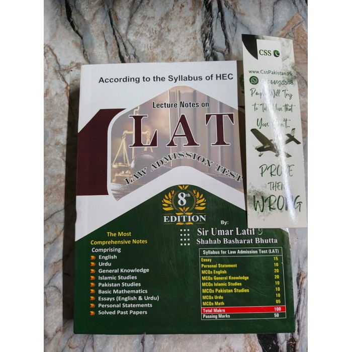 Lecture Notes on Law Admission Test (LAT) 8th Edition by Sir Umar Latif & Shahab Basharat | National Academy Lahore | Eighth 8th Edition 2026 | According to New Revised Syllabus of HEC | The Most Comprehensive Notes | Comprises of Solved Past Papers |